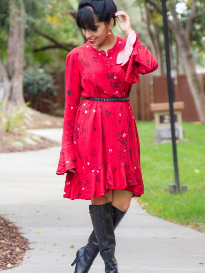 We did not forget the only day of the year that symbolically dedicated to all things love & heart shaped! And Arpi did not miss the chance to go all red in love and adorn her hearts on her sleeves. This is a tent dress with ruffles on the hemline and bell sleeves. Arpi wore […]