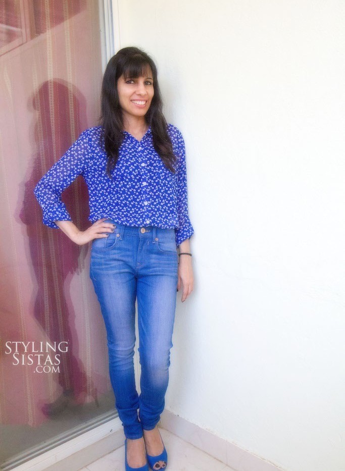 Ana croons the blues! Stella Jeggings: Express Chiffon Shirt: Hollister Leather sling sandals: Nine West Photo: Arpita Mishra