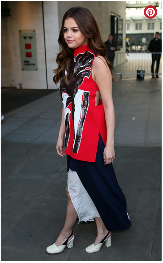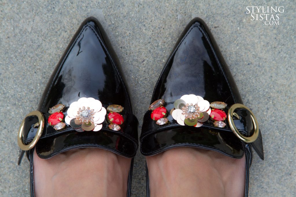 Arpi decided to accessorize with contrast tones. Little black purse and chunky heeled loafers. Although pitch black the details, floral embellishments, on this pair of shoes make it cutely befitting for a spring afternoon. The block heeled shoes are trending gradually since last spring and of course our style icons have not been shy of wearing them, like Selena Gomez in this pic here.