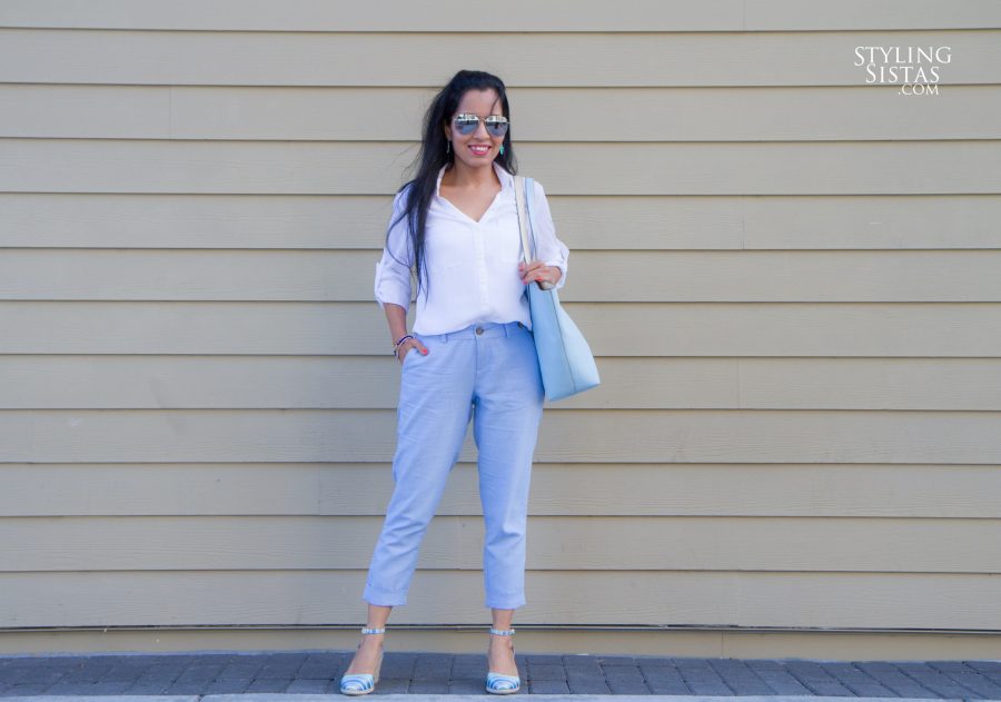 Arpi here is feeling the soothing periwinkle blue and white. Doesn’t she appear like a vision in periwinkle (wink!) She kept her styling looking easy, breezy, and definitely springy!