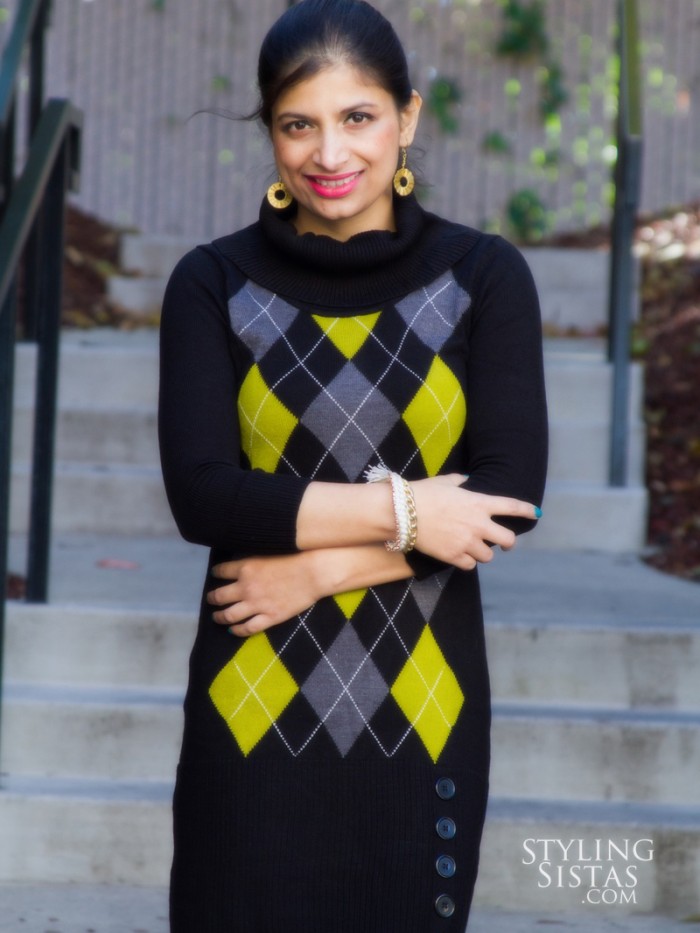 Arpi helped Pranati quickly dress up for a coffee date with hubby in SFO. Pranati fell in love with this argyle patterned sweater dress (from JC Penny). The vertical buttons by the front side seam is a nice quirky detail. The 3/4 sleeve and thigh high length of the dress gives enough warmth and exposes enough skin […]