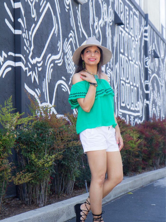 Pra was out and about in this cute ensemble, put together by her bestie Arpi, in this wonderful summer afternoon. The offshoulder cotton top with a dainty black appliqué on its frills. The black pointy front tie-up flats ties in the look. The white shorts are a staple for summer and so is the sun hat. Pra […]