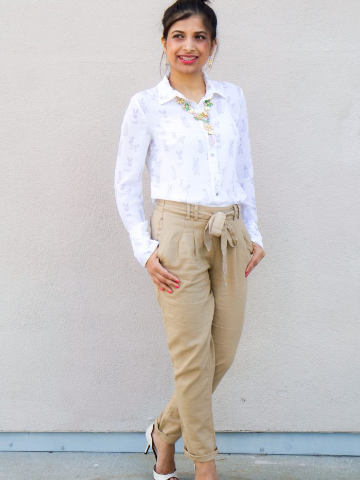 Hey we all bunny hopped to Spring alright! Here is our friend and loyal client Pra in Easter spirit. Weather now in San Fran is amazing and this white and khaki combo ensemble keeps the mood light and airy. Don’t miss the little hopping bunnies on her shirt. The tie-waist khakis are were one of the […]